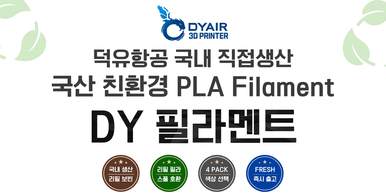 덕유항공 국내직접 생산 국산품 PLA필라멘트 친환경 DY필라멘트 리필보빈, FRESH필라멘트 즉시출고, 믿을수 있는 품질, 검증된 원료, 철저한 생산품질관리, 뱀부랩 크리얼리티 애니큐빅 플래시포지 엘레구 3D프린터 호환